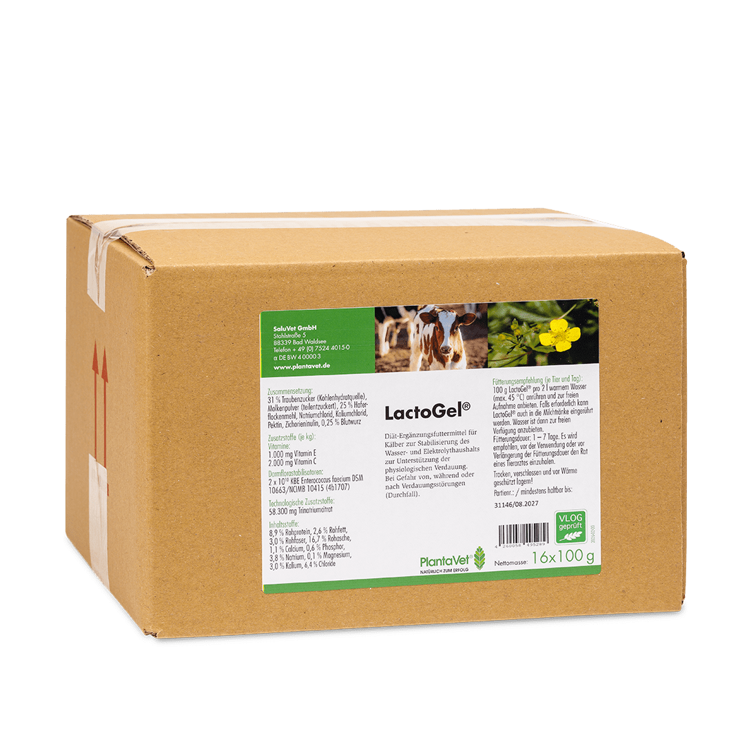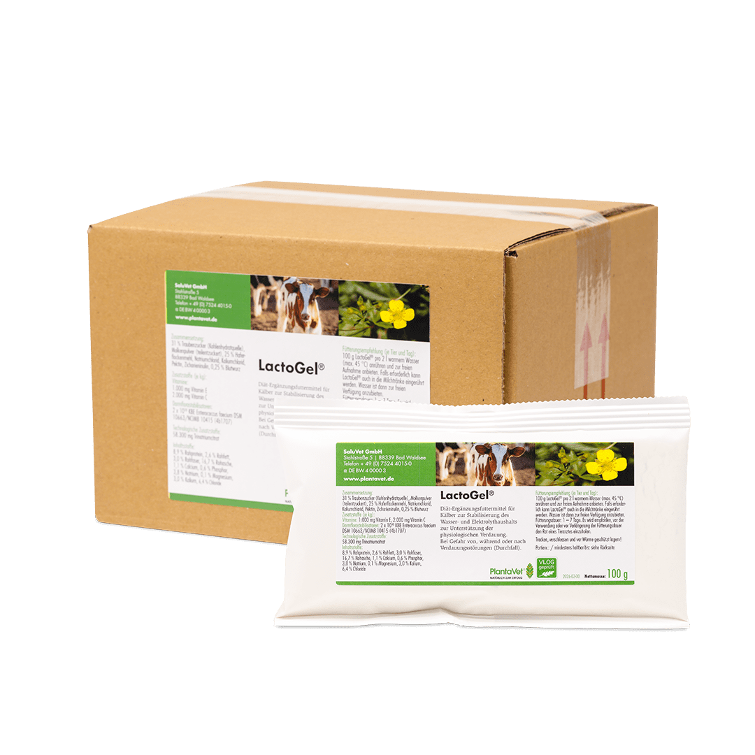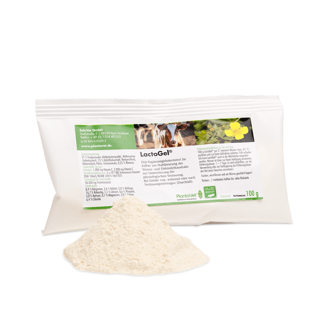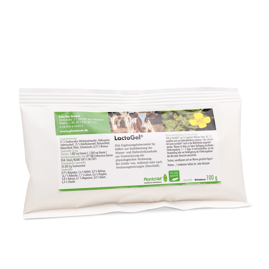 100 g LactoGel® (1 Messbecher = 100 g) pro 2 Liter warmem Wasser (max. 45 °C) anrühren und zur freien Aufnahme anbieten. Falls erforderlich kann LactoGel® auch in die Milchtränke mit 100 g pro 2 Liter eingerührt werden. Wasser ist dann zur freien Verfügung anzubieten.